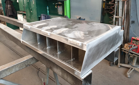 Aufgrund dieser Vorarbeiten konnte aus unterschiedlichen Konstruktionsvorschlägen die bestmögliche Lösung ausgewählt werden. Aufbauend auf der Konstruktion wurde das gewählte Modell im Kooperationsunternehmen „Gebrüder Haas“ produziert und als Prototyp an der Außenfassade montiert.