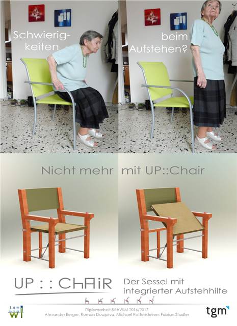 Ein, sowohl im Krankheitsfall, aber auch im Alltag älterer und behinderter Menschen häufig auftretendes Problem, stellt das Aufstehen von Sitzgelegenheiten dar. Aufgabenstellung dieser Diplomarbeit war daher die Entwicklung eines Sessels mit mechanischer Aufstehhilfe unter Ausnützung der noch vorhandenen Restkraft, um älteren und/oder körperlich eingeschränkten Personen ein vereinfachtes Aufstehen zu ermöglichen.