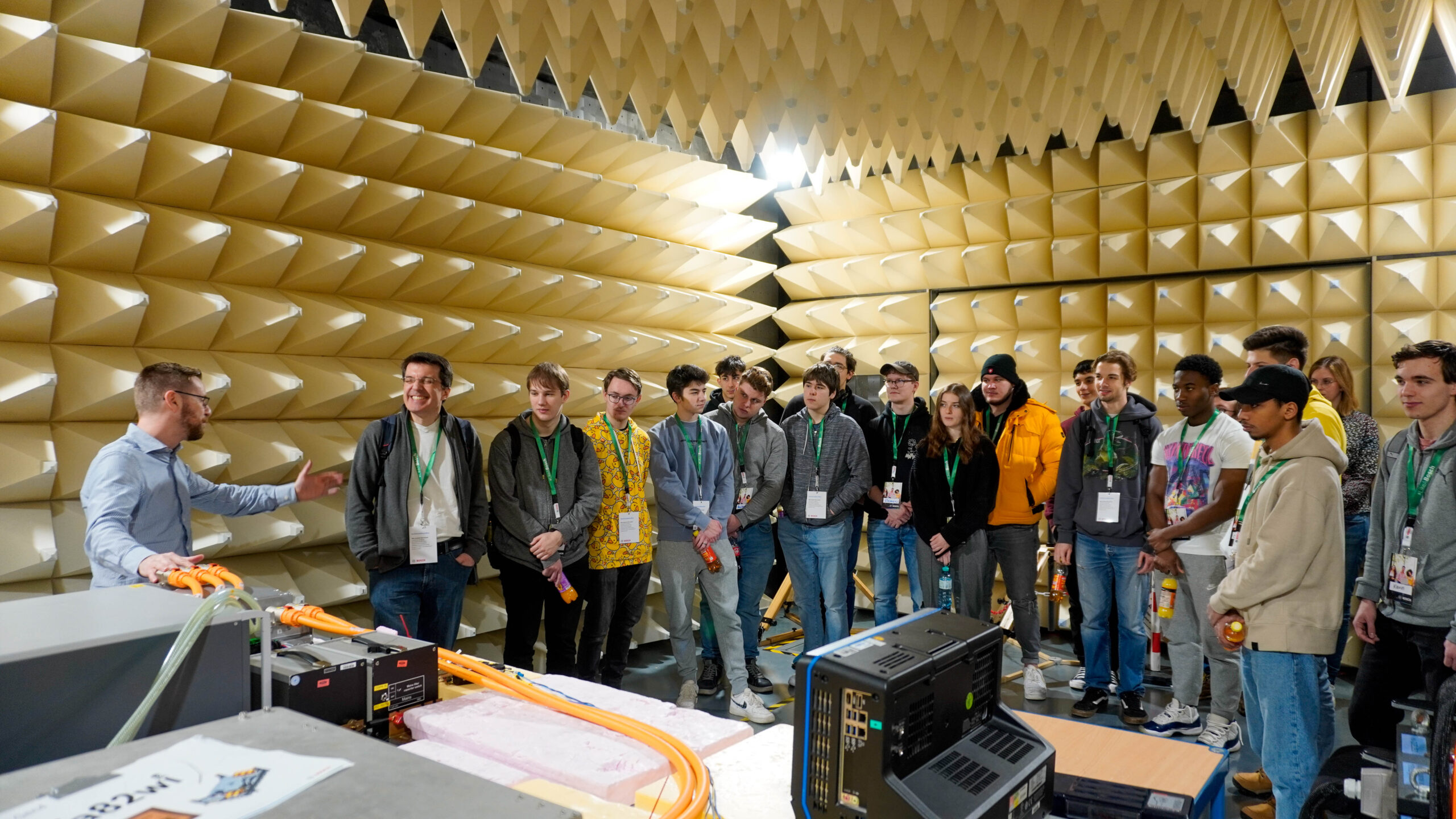 Wir Schülerinnen und Schüler der fünften Jahrgänge konnten beim OpenHouse@BoschWien Event am Forschungs- und Entwicklungsstandort in 1030 Wien, einen Einblick hinter die Kulissen von BOSCH bekommen. Durch die Besichtigung des beeindruckenden EMV-Labors und der Fahrzeughalle konnten wir Technik in der Praxis hautnah miterleben. Der Geschäftsbereich Powertrain Solution wurde uns über einen sehr interessanten Vortrag über Leistungselektronik in Elektrofahrzeugen nähergebracht. An einem smarten 1:10 ECO-Fahrzeugsystemdemonstrator als „IoT on Wheels“ bekommen wir Eindrücke in die agile Arbeitsweise im Unternehmen, wo Fahrassistenzsysteme und automatisiertes Fahren entwickelt werden. Als Abschluss des beeindruckenden Events wurden uns Karrieremöglichkeiten bei BOSCH vorgestellt.