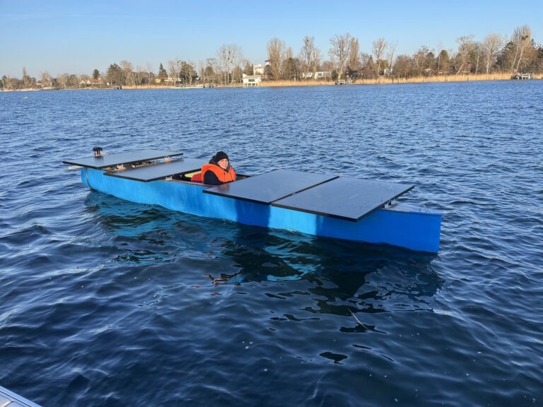 Am 30. Jänner 2024 fand die erste Probefahrt des Solarboots an der Unteren Alten Donau statt. Der verwendete Rumpf wurde zur Teilnahme an der International Waterbike Regatta 2017 gebaut und dient nun für Testfahren und als Backup für die Teilnahme unseres Boots an der Solar & Energy Boat Challenge in Monaco. Der Bau eines verbesserten und aus einem Naturfaser – Verbundwerkstoff hergestellten Rumpf beginnt nach den Semesterferien. Danke an den Ruderclub Pirat für die Benutzung der Infrastruktur.