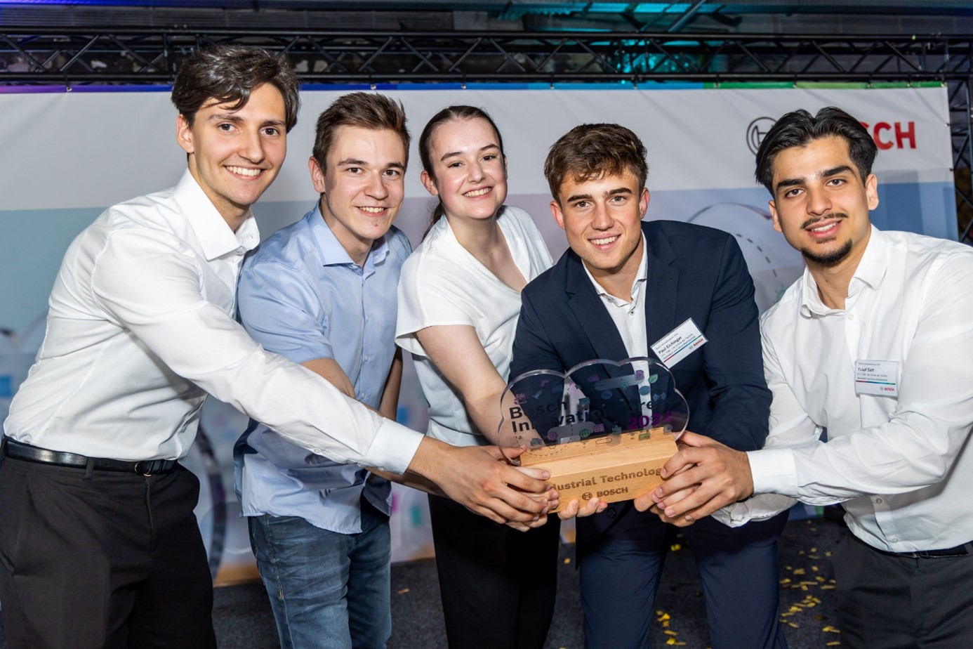 Es war schon ein großer Erfolg, als die Einladung zum Finale des Bosch Innovationspreises einlangte. Immerhin waren nur die besten fünf aus 75 Einsendungen in den drei Kategorien nominiert. Das Event auf dem Gelände der Robert Bosch AG geriet dann zu einem Fest für das TGM, als das abteilungsübergreifende Team als Gewinner feststand. Gratulation zu dieser Leistung!