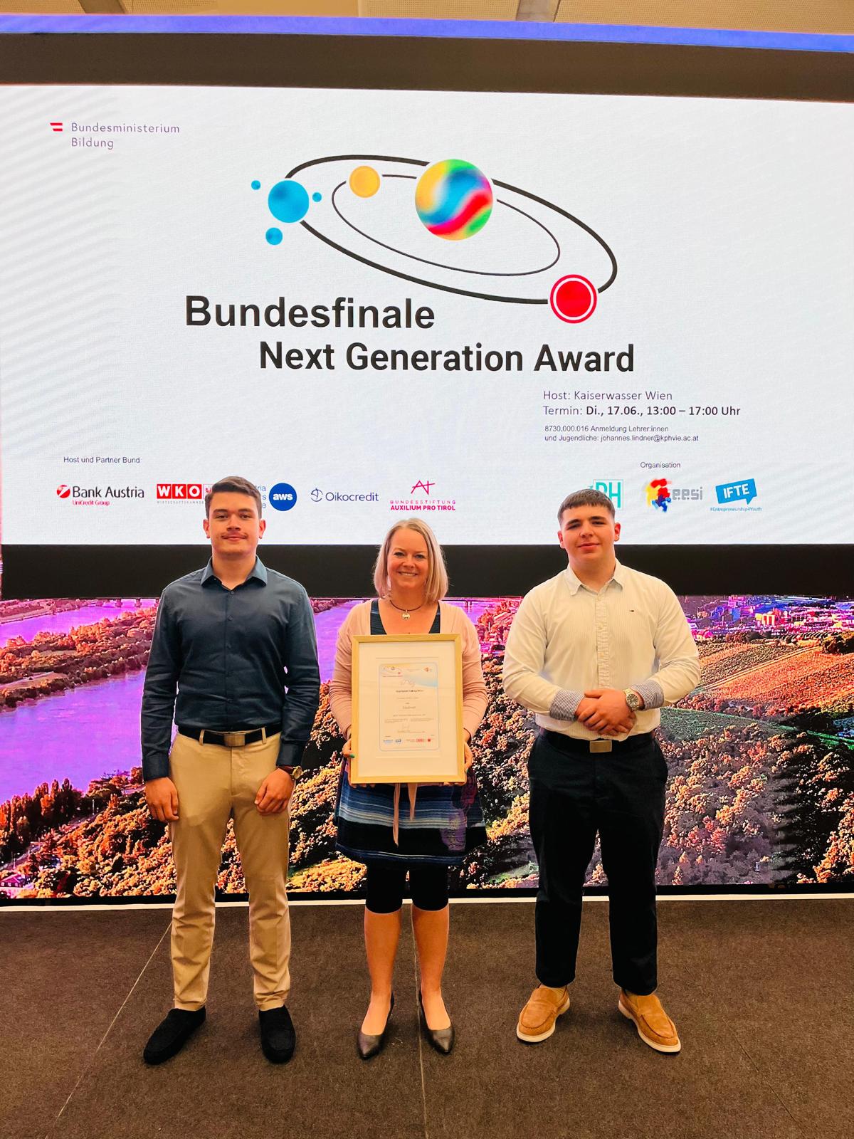 EduSmart überzeugt bei der Real Market Challenge des Next Generation Awards. Ein großer Erfolg für die Abteilung Wirtschaftsingenieure: Das Schülerprojekt EduSmart hat bei der renommierten Real Market Challenge des Next Generation Awards nicht nur die Jury überzeugt, sondern sich auch den Einzug ins Bundesfinale gesichert. EduSmart sicherte sich von über 400 Teilnehmern den 1.Platz.