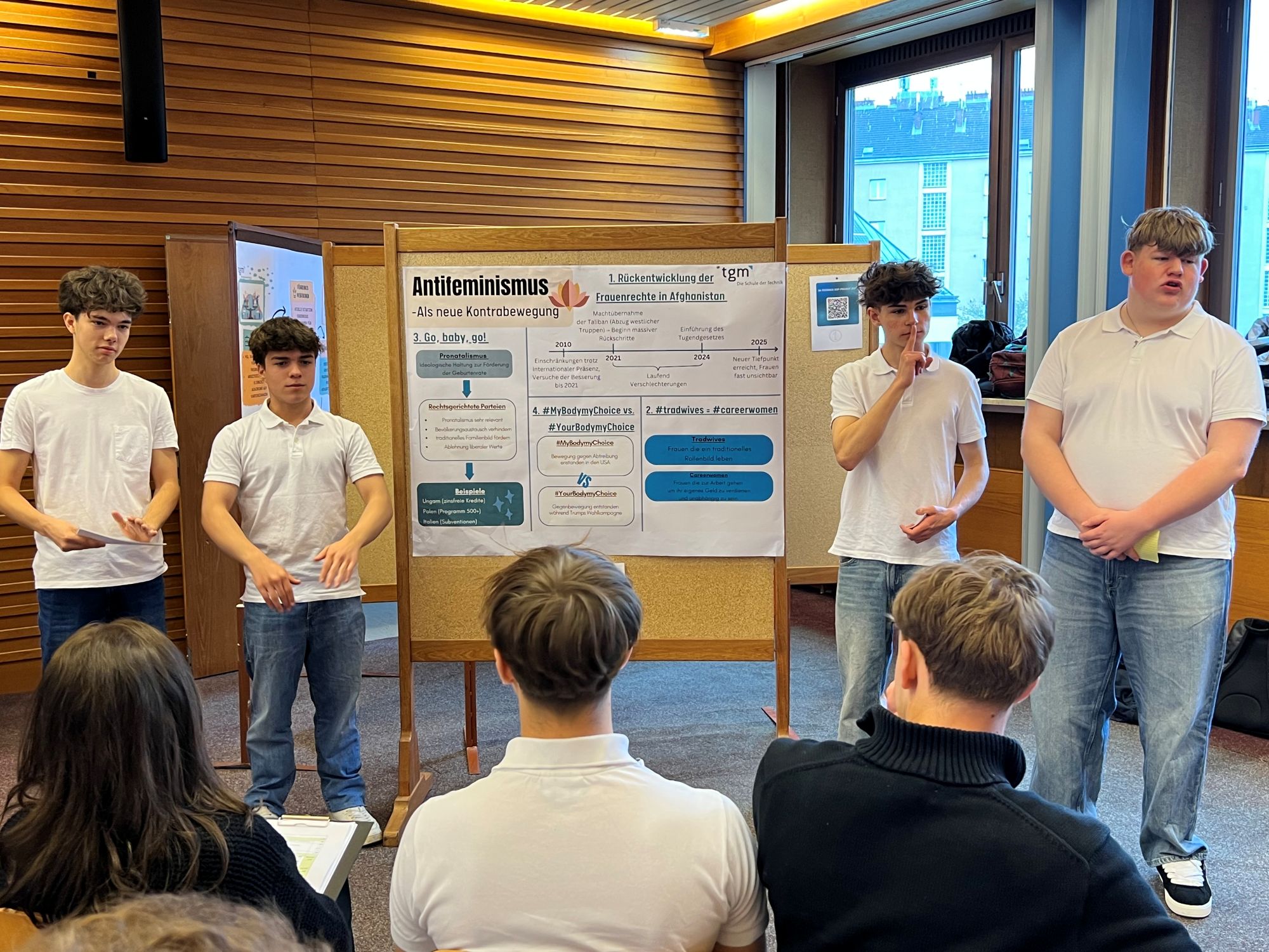 Seit mehreren Jahren ist das interdisziplinäre Projekt aus Geografie/VWL und Geschichte/Politische Bildung ein fester Bestandteil der dritten Jahrgänge unserer Abteilung. Unter dem gemeinsamen Leitthema „FEMINISMUS“ arbeiteten die Schülerinnen und Schüler der 3ABCHWI mehrere Wochen lang an verschiedenen Unterthemen, die schließlich im Exnersaal präsentiert wurden.