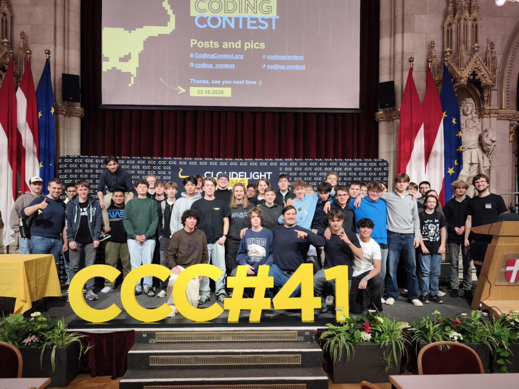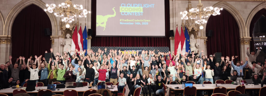 Am 14. November 2025 zeigten die talentierten Schüler:innen der Abteilung Informationstechnologie (HIT) des TGM beim 41. Cloudflight Coding Contest (CCC) im festlichen Ambiente des Wiener Rathauses ihr Können im Programmieren. Begleitet von den Professoren David Körner und Michael Pointner stellten sich 72 Schüler:innen in 24 Teams den algorithmischen Herausforderungen in den Disziplinen #School und #Classic.