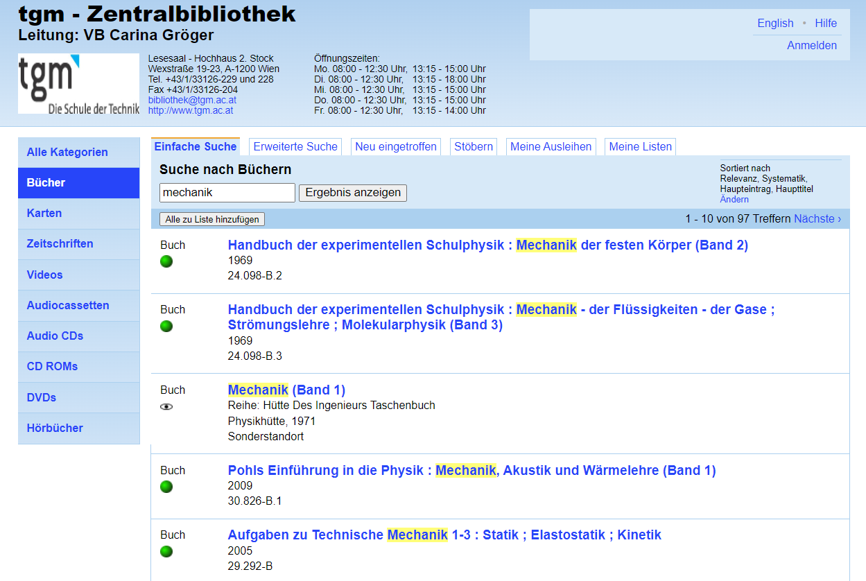 Hier geht es zum Online-Katalog: tgm-Zentralbibliothek