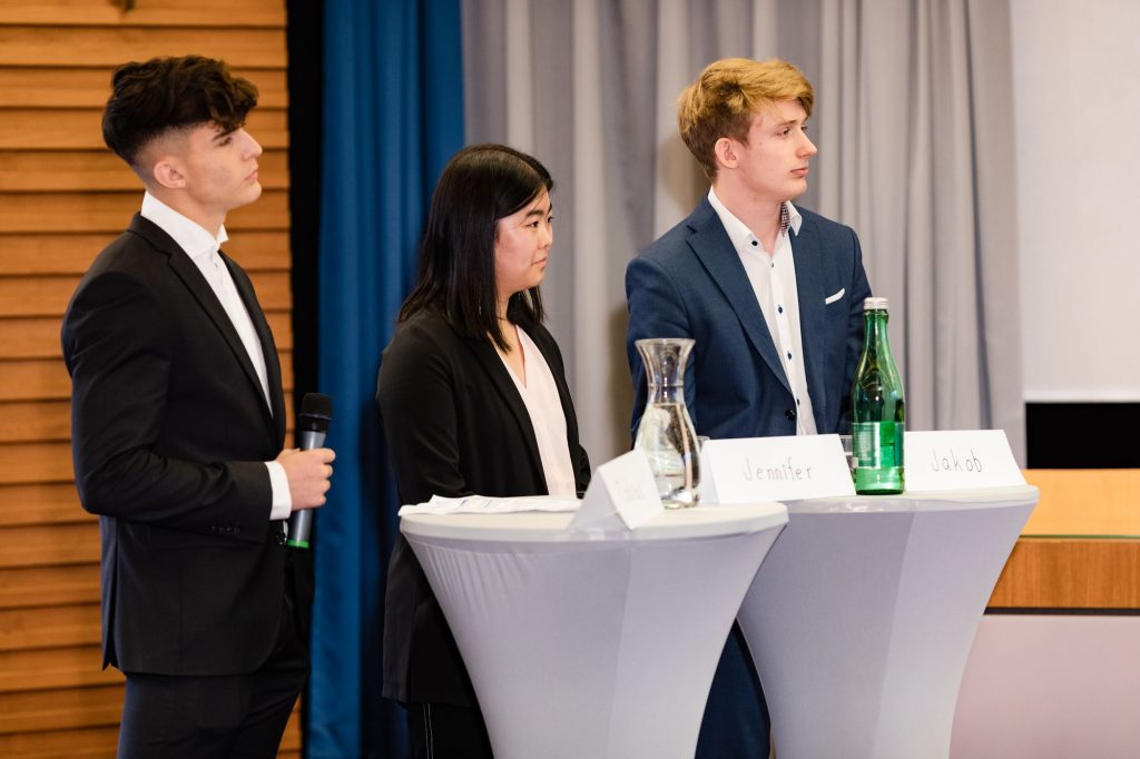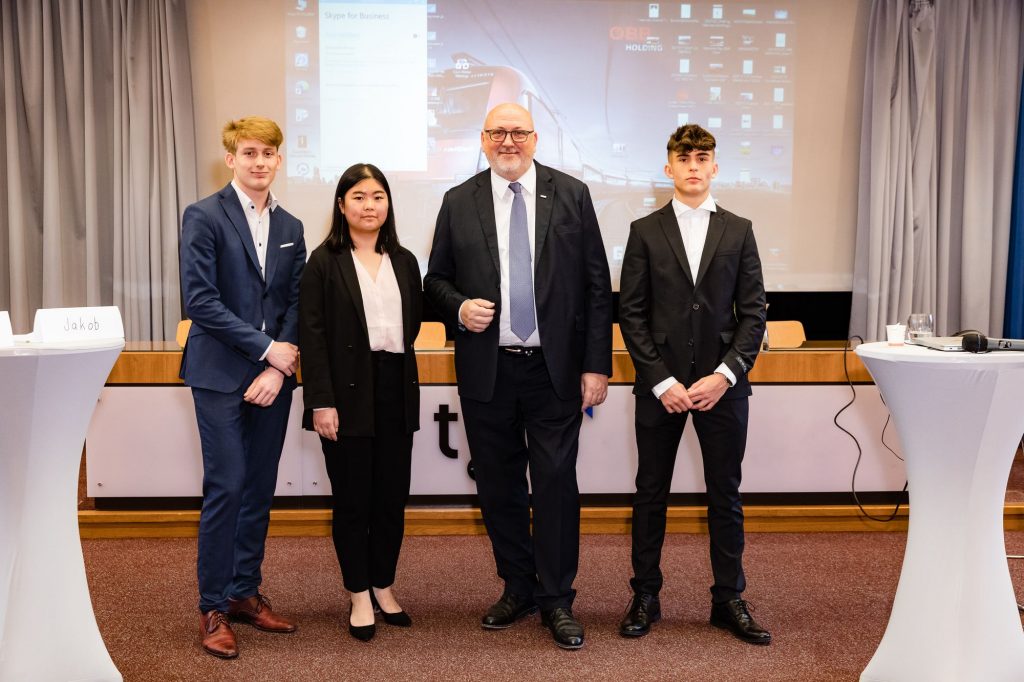 Nach einleitenden Worten von HWI-Abteilungsvorstand Prof. Georg Angerer und Prof. Clemens Schuhmayr, moderierte Bernd Winter, Pressesprecher ÖBB Holding AG und TGM-Absolvent „Maschinenbau-Betriebstechnik“ (Maturajahrgang 1985) die Veranstaltung. Seit einigen Jahren führt Winter regelmäßig Logistik-Workshops mit Schüler*innen der Maturajahrgänge der Abteilung Wirtschaftsingenieure – Schwerpunkt „Logistik“ durch. Gemeinsam mit Prof. Schuhmayr und den Schüler*innen der 5CHWIL organisierte er die erstmalige Podiumsdiskussion mit ÖBB CEO Andreas Matthä. Die Fragen stellten engagiert und mutig dann am 12. November Tobias Hedl, Jakob Masching und Jennifer Zhang (alle 5CHWIL).